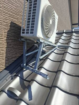 今年の雪の重みで、屋根の室外機の土台が歪んでしまったらしいです。